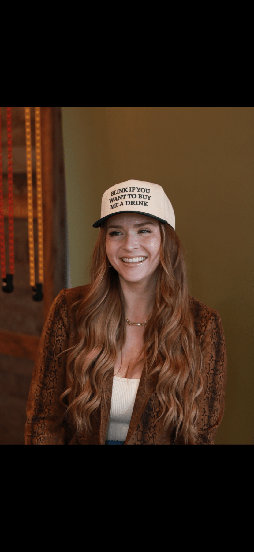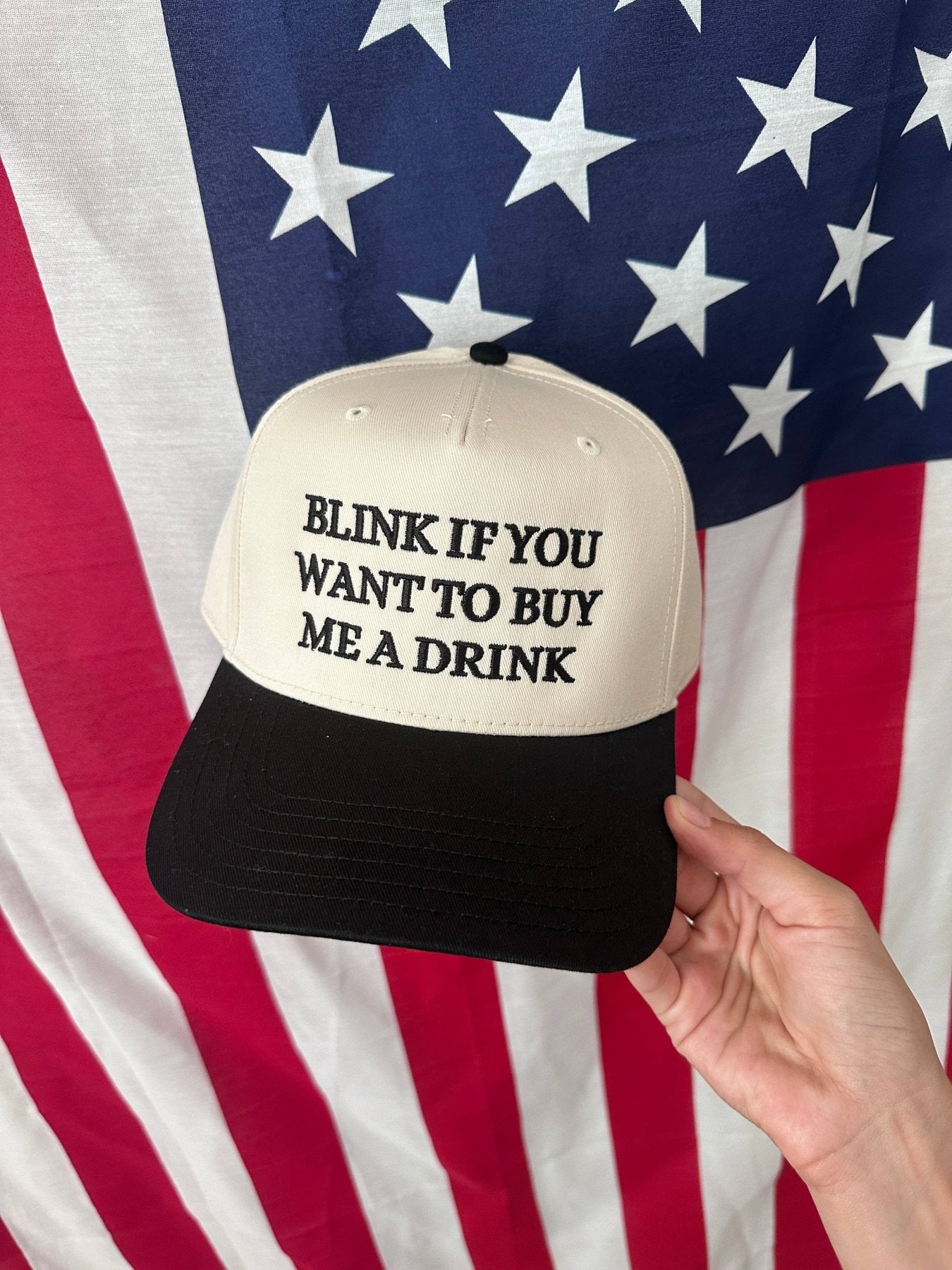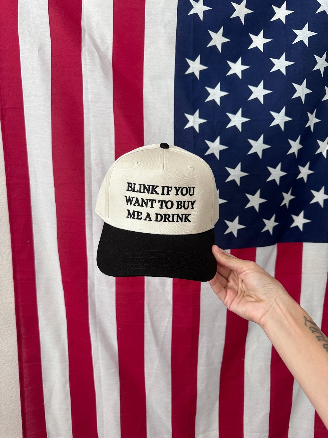 BLINK TO BUY ME A DRINK TRUCKER HAT