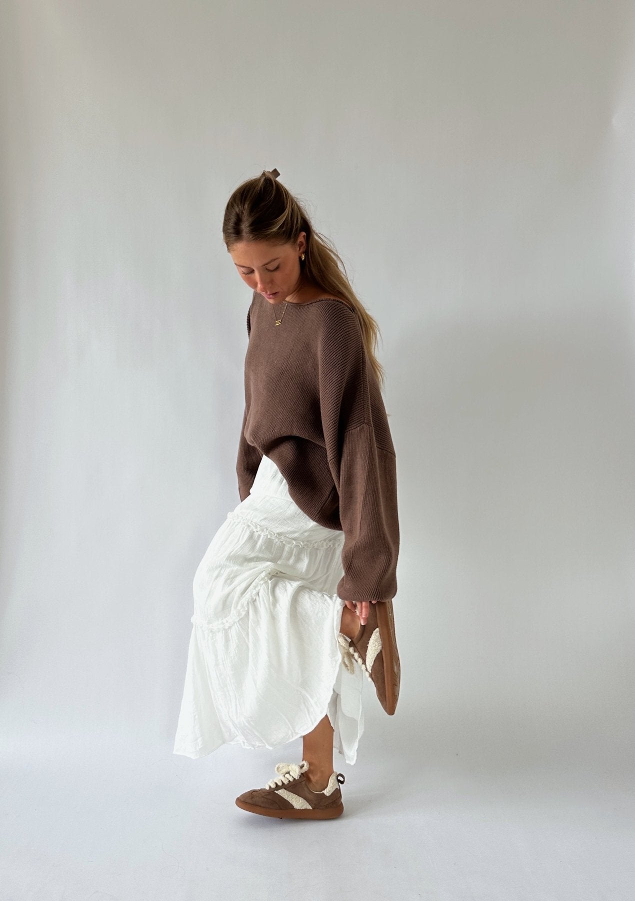 Vegan faux-suede sneaker with retro detailing and a gum sole.