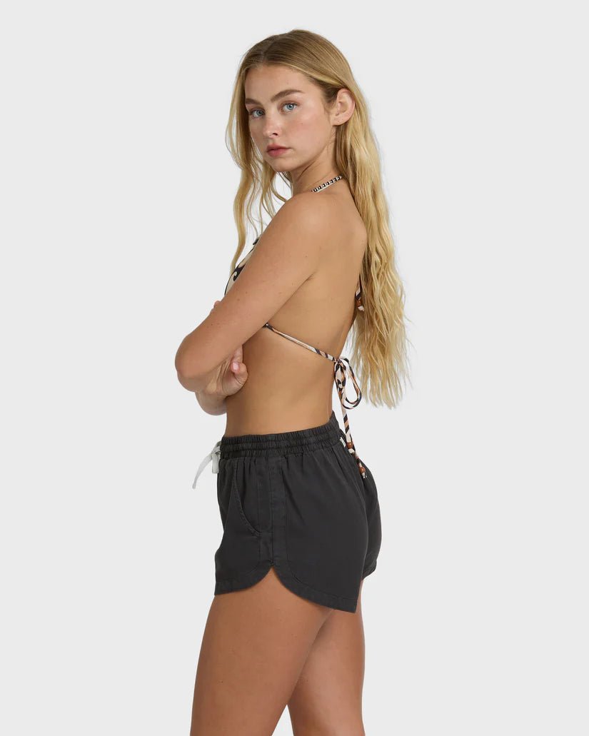 The Road Trippin Shorts keep it easy with a lightweight cotton-viscose twill that drapes just right, an elastic waistband with drawcord you can cinch or wear loose, and a breezy short length made for sunshine and long drives. Side seam pockets stash the small stuff, while the subtle scalloped hem adds a hint of flutter with every step.