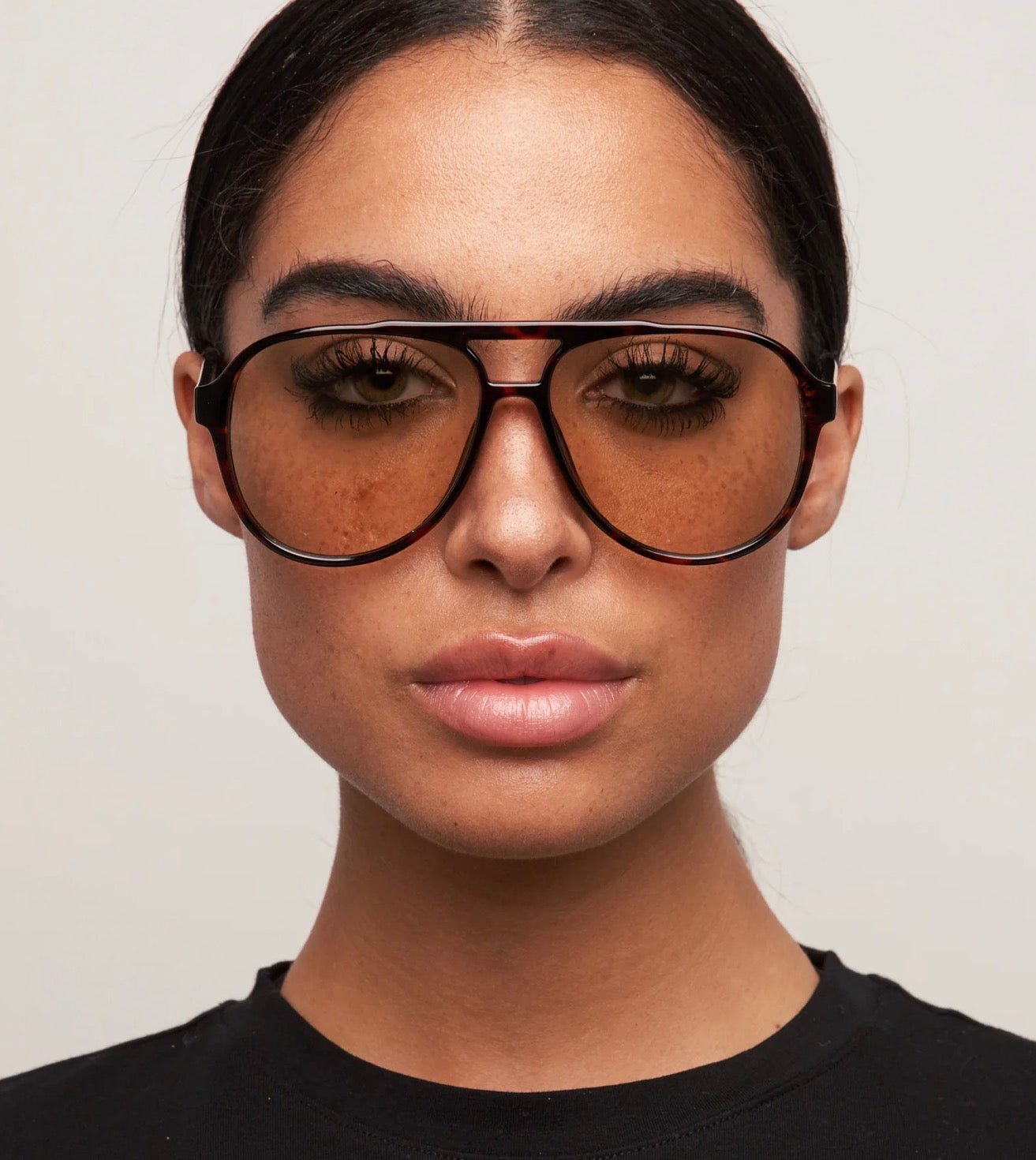Our best-selling classic oversized aviator sunglasses in tortoiseshell pairs retro charm with a modern edge. Finished with smooth fade brown lenses, it’s a laid-back statement that balances warmth and cool. Timeless, effortless, and made to stand out.