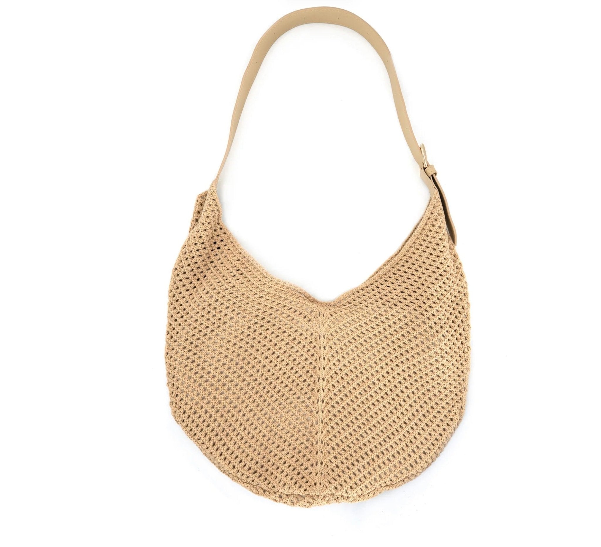 Crochet hobo bag with adjustable leather strap