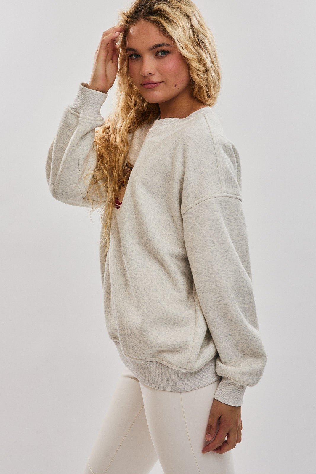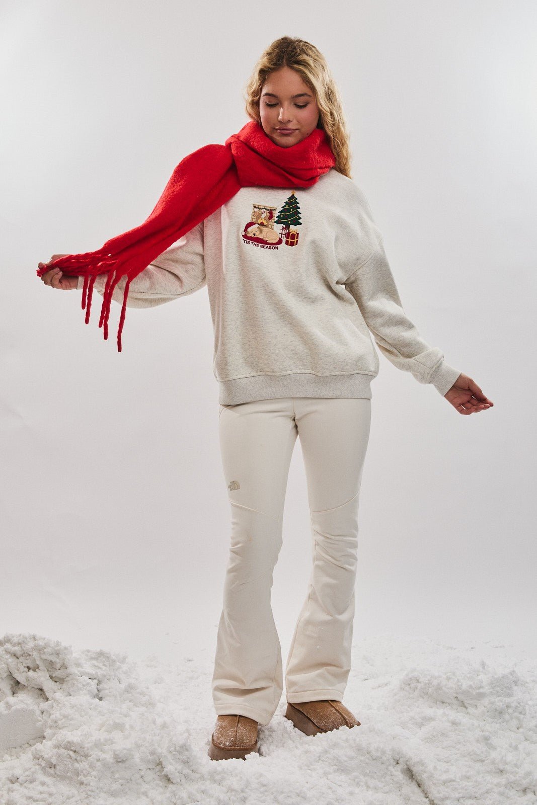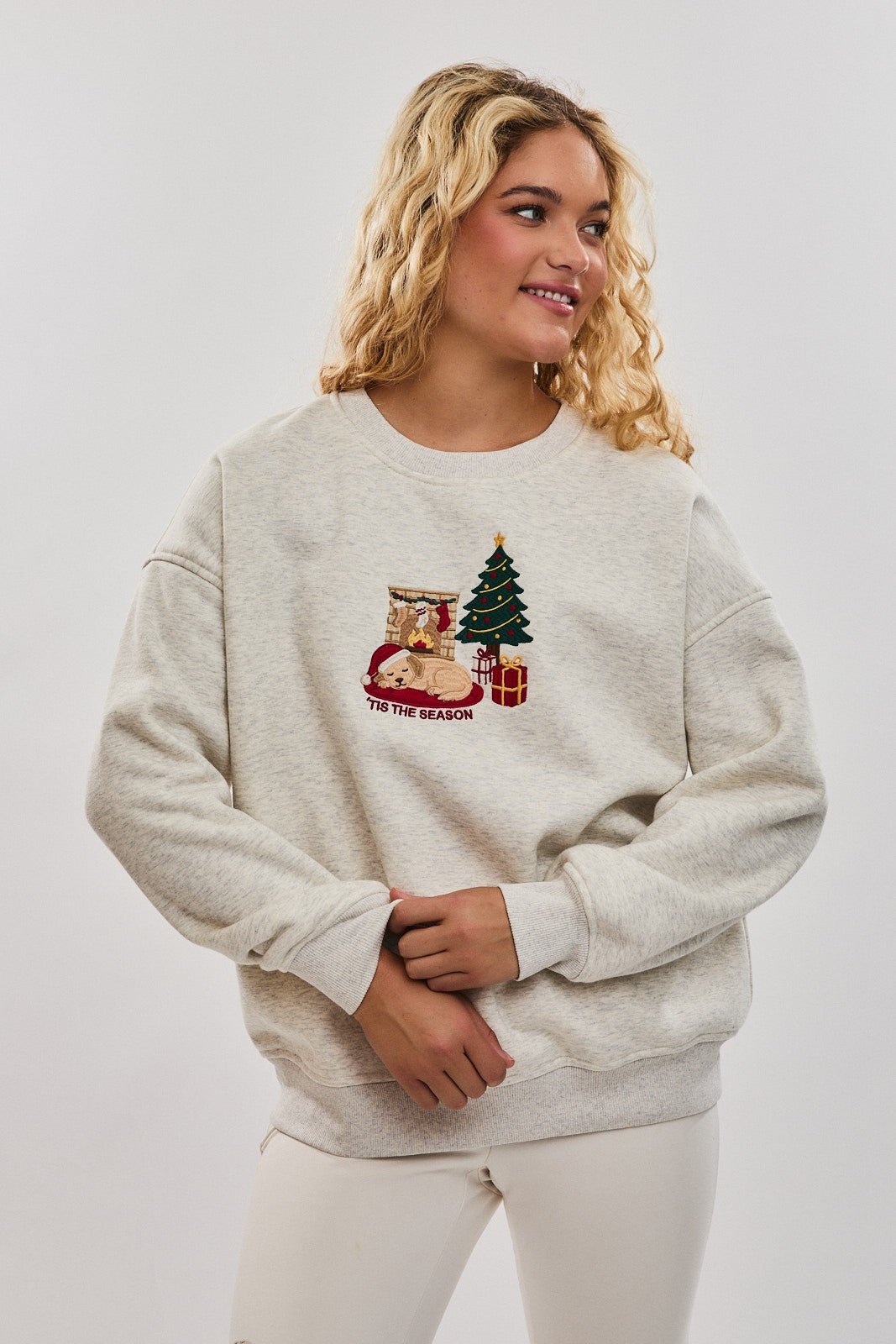 The Heather Grey Holiday Crew Neck is the perfect addition to your winter wardrobe. Featuring an "Tis the season" embroidered graphic, this crew neck sweatshirt is both fashionable and festive. Made with an oversized fit and available in multiple sizes for a comfortable and stylish look.